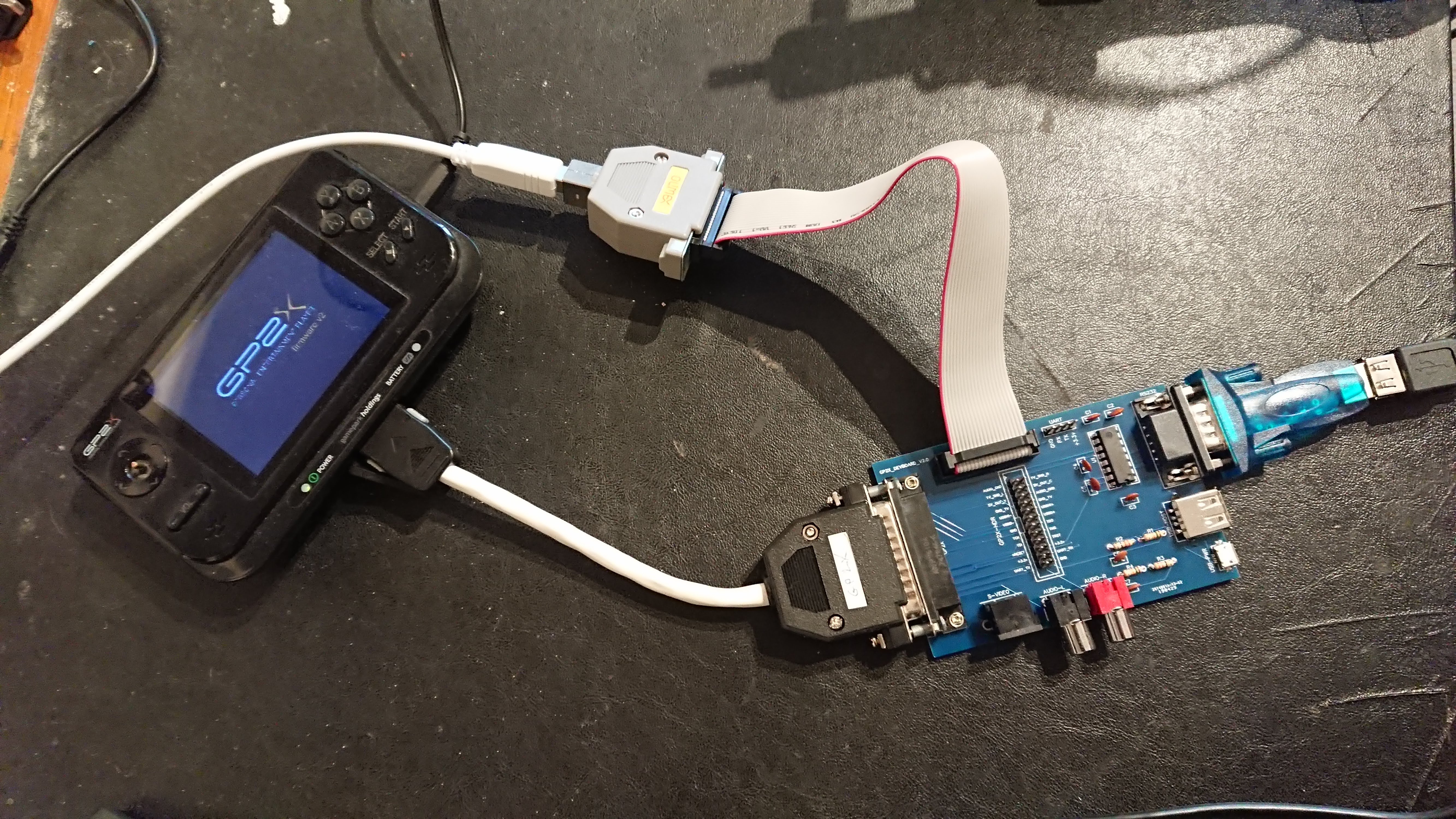 While dragging all my old hardware out of the loft, I camme across an original GPH breakout board, and also a cradle. Both have a built in 'wiggler' JTAG parallel port adapter and while I do still have a parallel port on my desktop, I never found it to be particularly reliable in the past so would rather use my Olimex USB JTAG dongle. Furthermore, I'd like to experiment with connecting some ESP8266 boards to the UART pins directly, without the level shifting on the RS232 connections provided by the GPH boards.